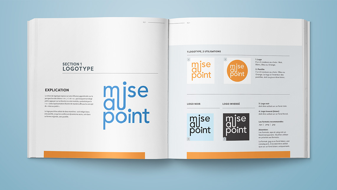 Service de conception du logotype, de la sélection des couleurs et des choix typographiques.